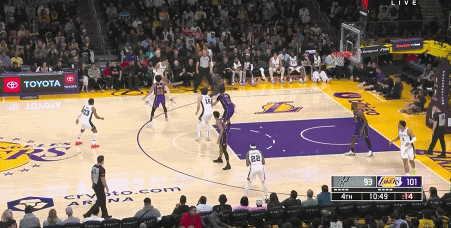 勒布朗的第四万分,弧顶面对波特,突破,后转身抢一步,