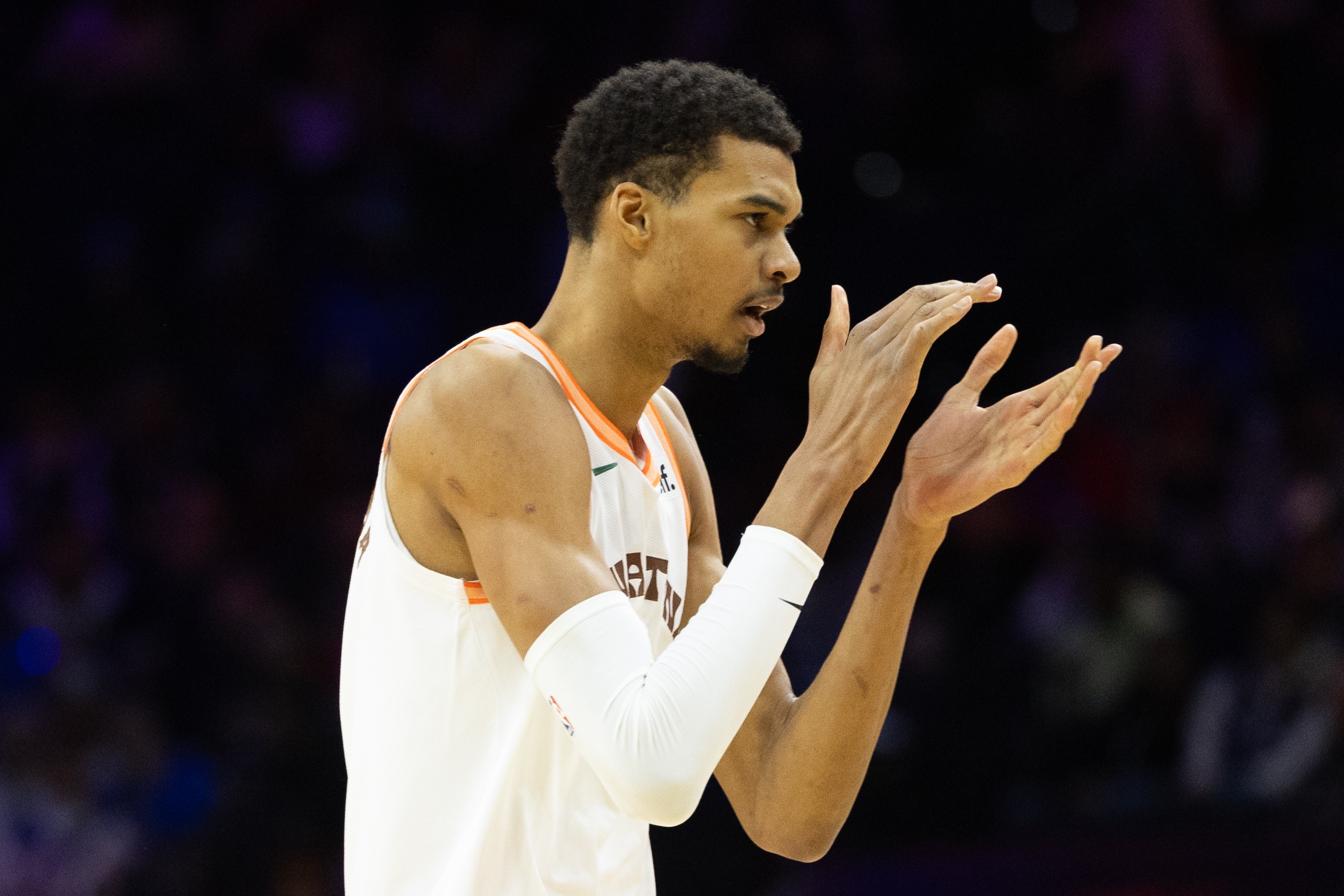 谈及本场比赛的表现,文班表示:“今晚我很努力。”