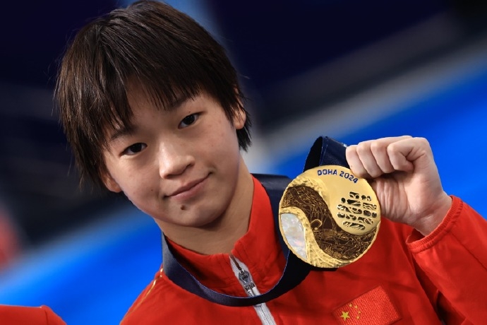 2月6日,在多哈举行的国际泳联世锦赛女子单人10米台比赛中,全红婵5跳表现完美,首次夺得金牌。