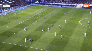 上半场补时2分钟,阿根廷0-1乌拉圭。